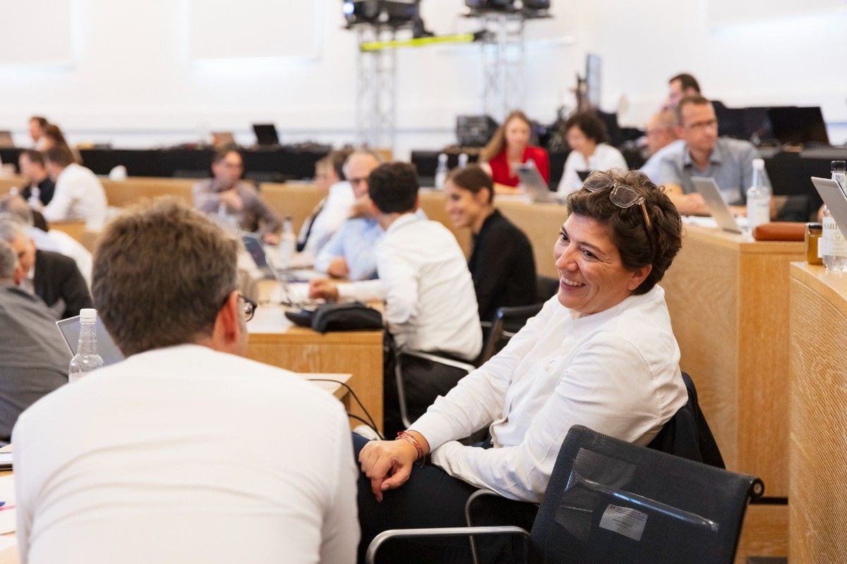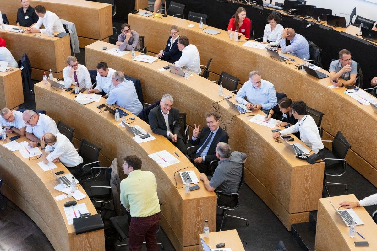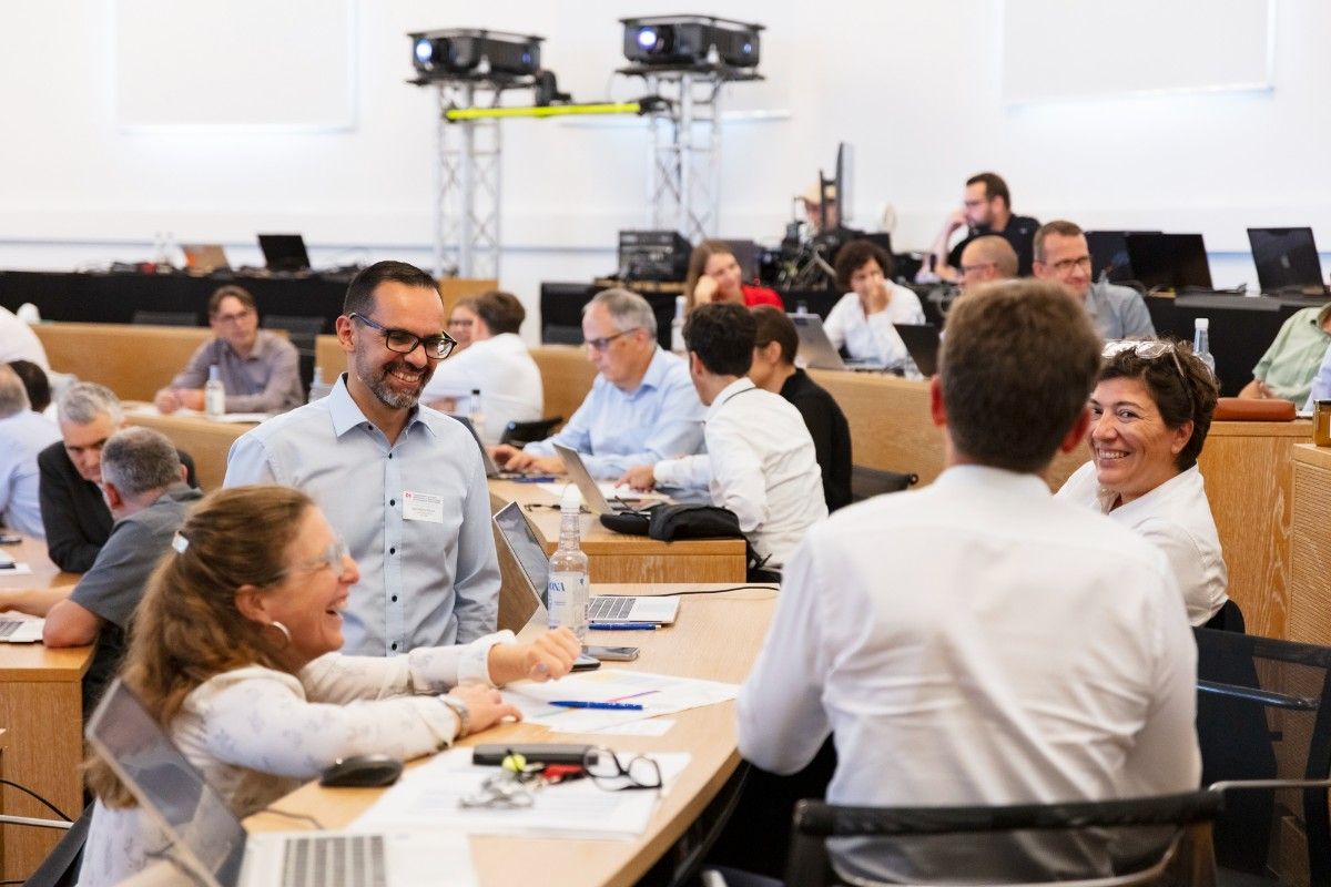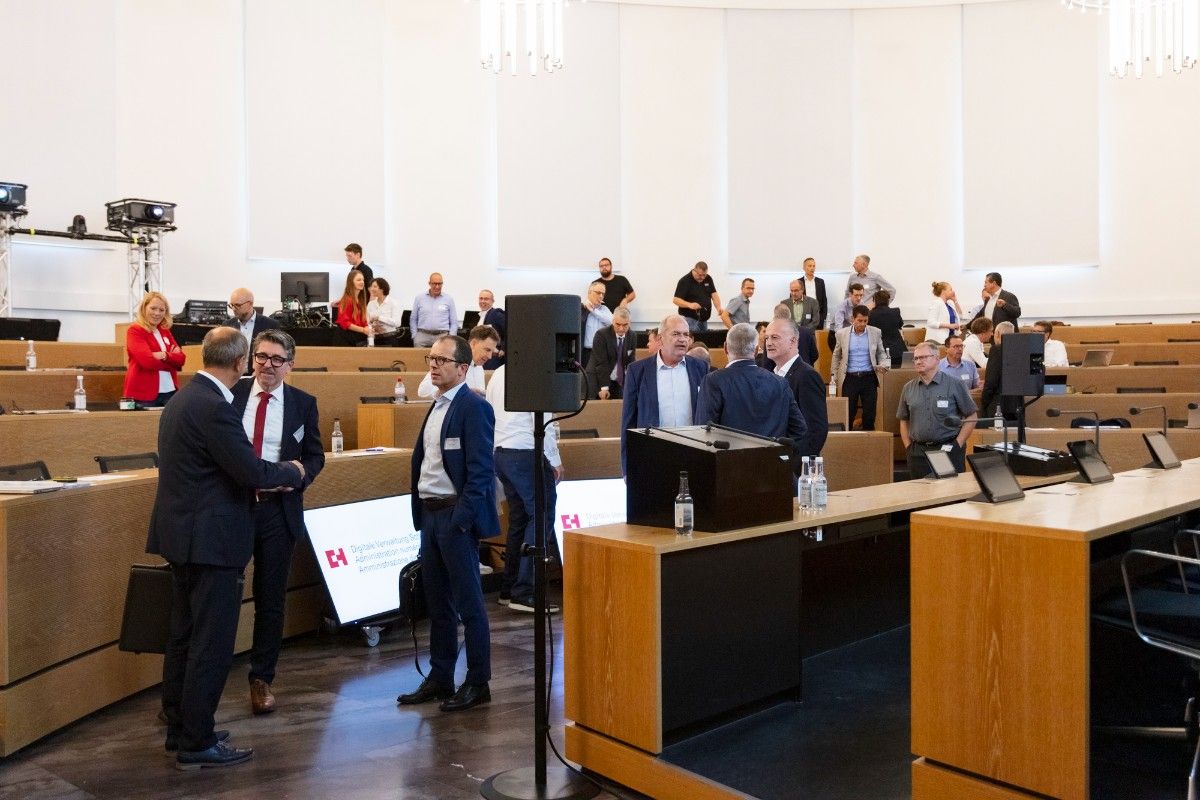Am 5. September 2024 trafen sich die Delegierten der Digitalen Verwaltung Schweiz (DVS) im Grossratssaal in Aarau zur sechsten Delegiertenversammlung. Im Rahmen der ordentlichen Geschäfte erfuhren sie unter anderem den Stand der Umsetzung der Strategie  «Digitale Verwaltung Schweiz 2024–2027». Sie erhielten auch Einblicke in laufende Digitalisierungsprojekte von Bund, Kantonen und Gemeinden sowie in Innovationsvorhaben der DVS. Die Delegierten nutzten den Tag und das gemeinsame Rahmen- und Abendprogramm zum fachlichen Austausch und zum Netzwerken.